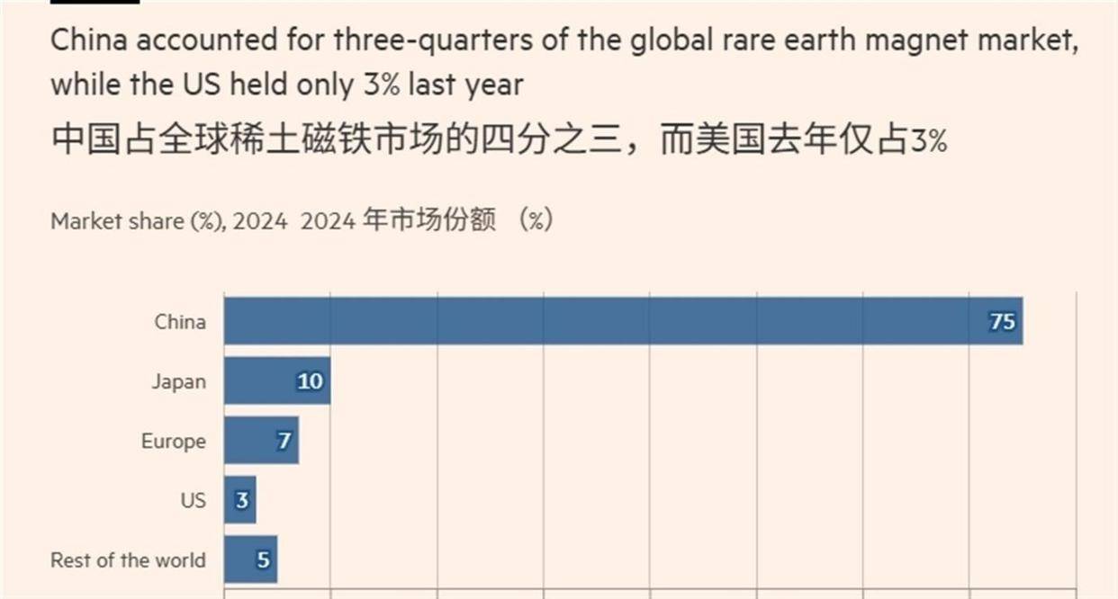 技术壁垒是核心因素。中国拥有全球90%以上的稀土冶炼专利,例如串级萃取技术可使稀土纯度达99.99%,而欧美企业因成本高昂难以复制。此外,中国已形成“开采—冶炼—材料—回收”的产业闭环。以稀土磁性材料为例,从晶界扩散技术到耐高温涂层工艺,需跨学科技术整合,中国建立的“稀土功能材料创新中心”已联动68家企业和科研机构。