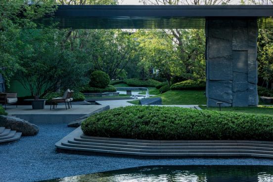以“九曲映翠”的空间主题及曲线洄游动线,串联起“通过“艺术前场、迎宾水景、邻里客厅、共享客厅、四季识园、无界社交空间、儿童大象乐园、绿意游道、元气交流空间”九大功能空间,构建一系列高品质景观场景,让关于理想生活的想象一一上演。